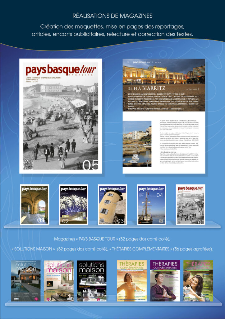 Mise en page de catalogues, brochures, flyers, affiches, menus, cartes de visites...